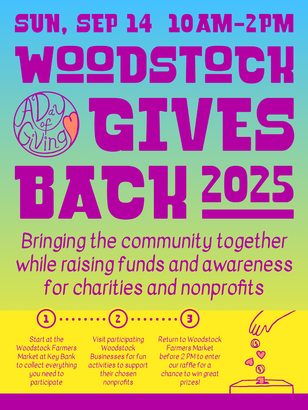 Join us on Sunday, September 14th for the 11th Annual Woodstock Gives Back. More info can be found here.